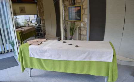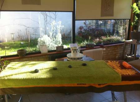 Massage effectué sur table de massage, dans une salle chaleureuse, bien chauffée et indépendante.